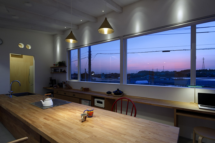 2階は眺望を活かしたキッチンとダイニングのみ。